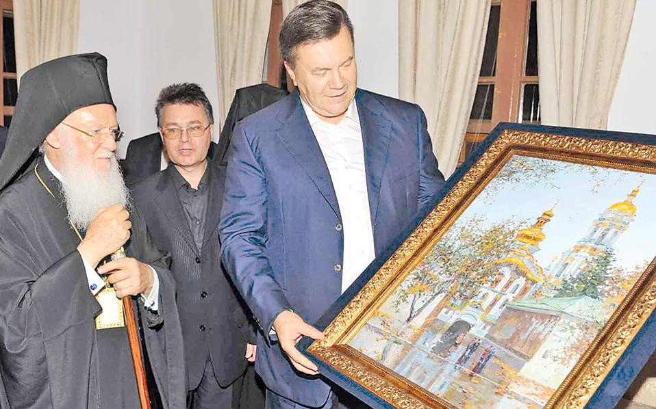 Στιγμιότυπο από τη συνάντηση του Γιανουκόβιτς με τον Οικουμενικό Πατριάρχη κ. Βαρθολομαίο στις Καρυές, το 2011.